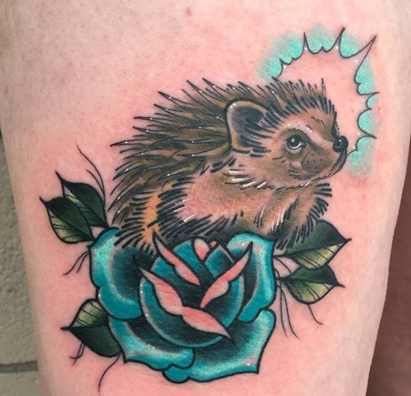 14款风格各异的彩色纹身动物小刺猬纹身图案