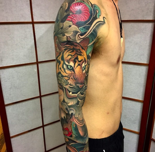 15款新传统花臂纹身动物和人物肖像纹身图案