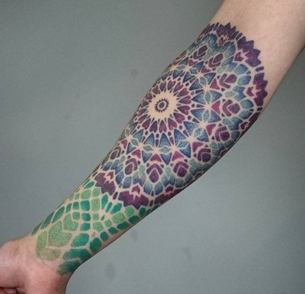 彩色不可抗拒的点刺纹身几何花纹身图案