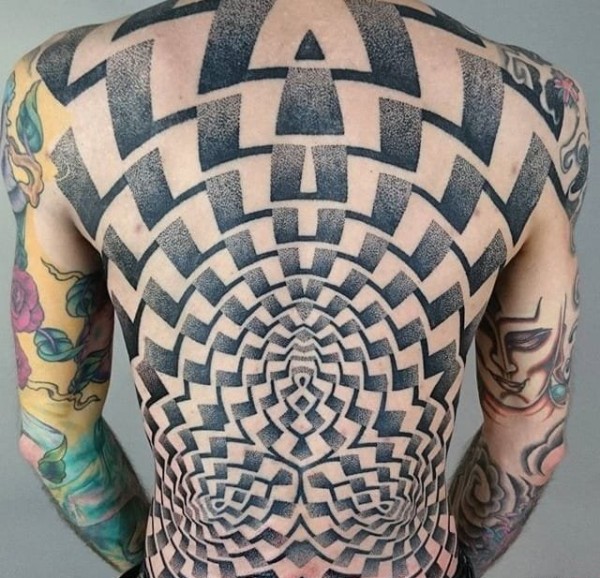 彩色不可抗拒的点刺纹身几何花纹身图案