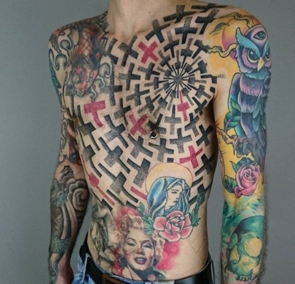 彩色不可抗拒的点刺纹身几何花纹身图案