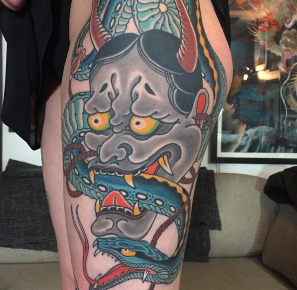 彩色的日本风格纹身般若面具纹身图案