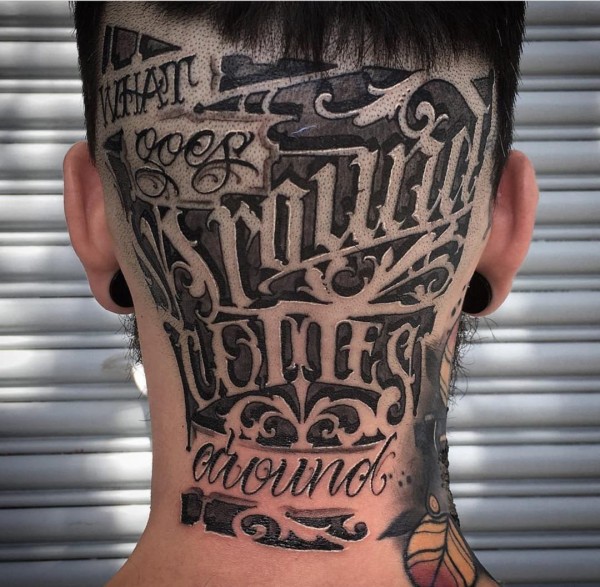 花体字纹身--一组男性漂亮的花体字纹身图案