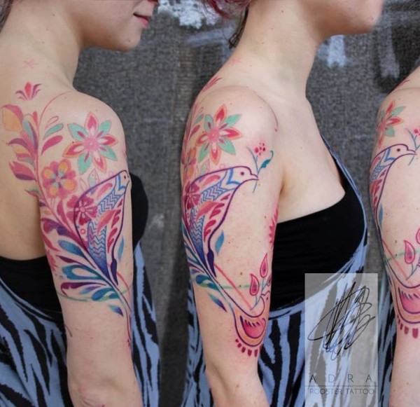 后肩唯美花藤英文图案图片_植物纹身图案大全_纹身图吧