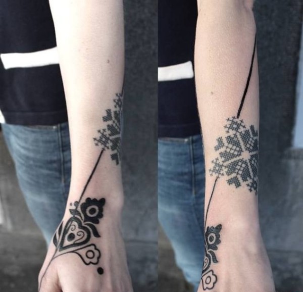 手部个性盛开莲花纹身图片_植物纹身图案大全_纹身图吧