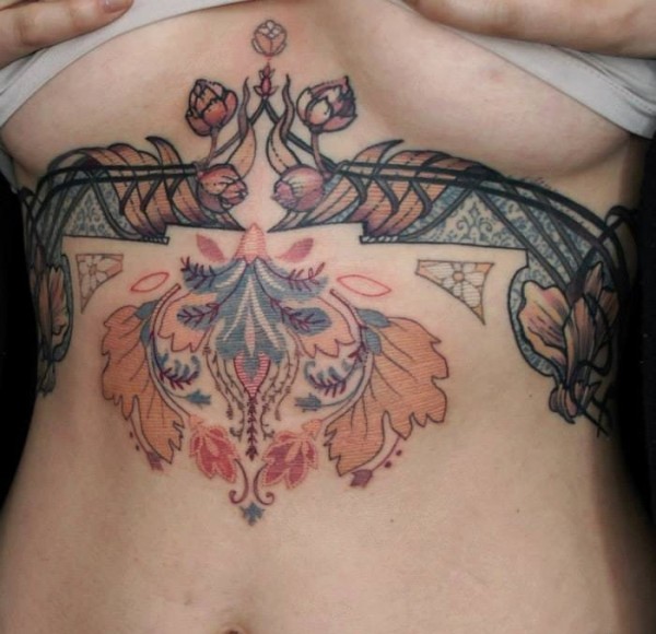 女性精致彩绘纹身几何纹身和小清新植物纹身图案