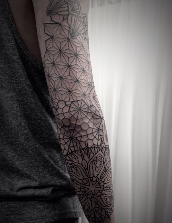 漂亮的黑灰色曼陀罗花臂纹身图案