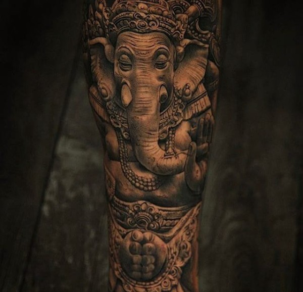 手臂黑灰象神_一组12张手臂上的黑灰象神纹身图案作品欣赏