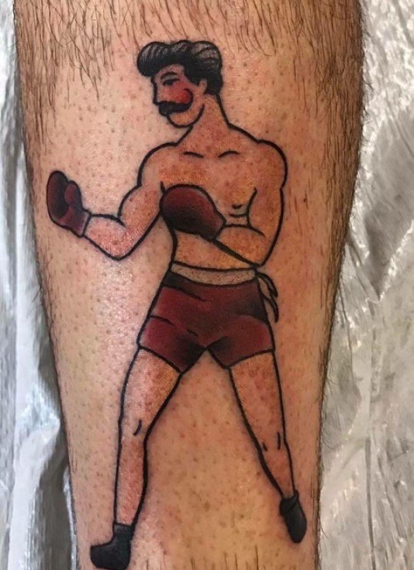 小腿上彩色纹身传统拳击男人纹身图片