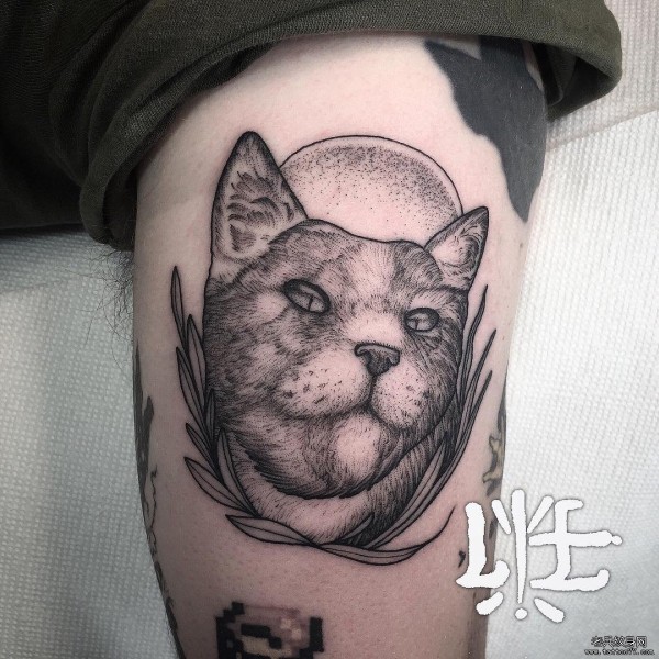 大臂欧美猫点刺纹身图案