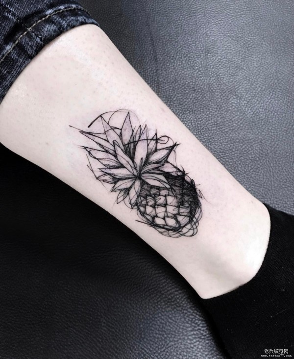 脚踝欧美线条菠萝纹身图案