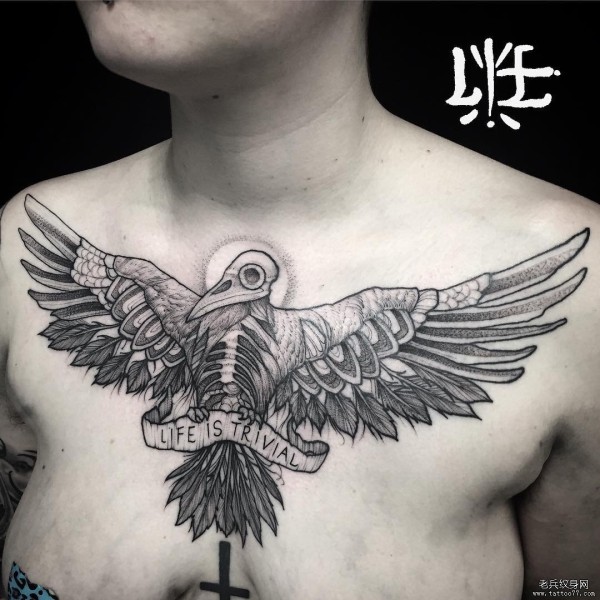胸部欧美骷髅秃鹫纹身图案