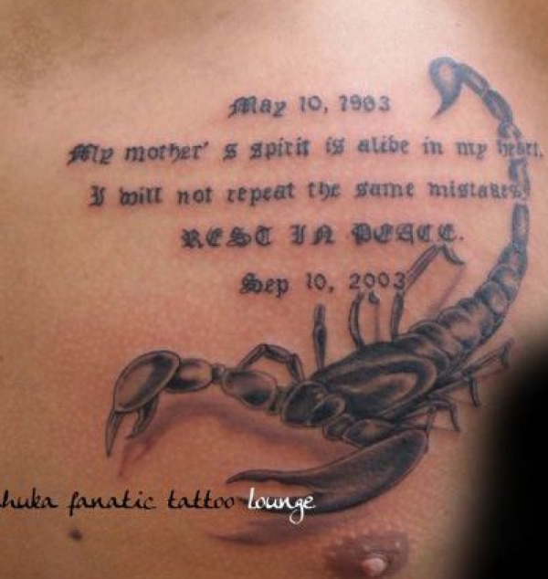 时尚个性男性胸前蝎子英文字母纹身
