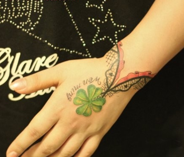 手腕蕾丝手背四叶草手链纹身图案