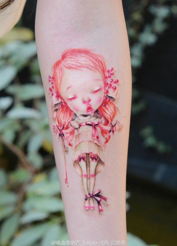 复古卡通红唇美女手臂纹身_卡通纹身图案大全_纹身图吧