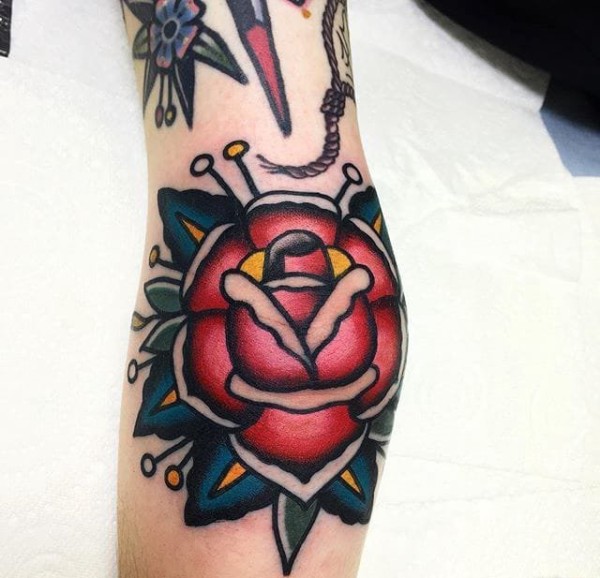 欧美玫瑰纹身 男生手臂上花朵纹身图片