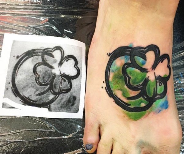 年轻男女性应该都会喜欢这样清新的四叶草纹身图案