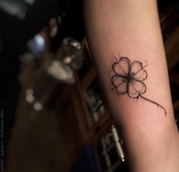 年轻男女性应该都会喜欢这样清新的四叶草纹身图案
