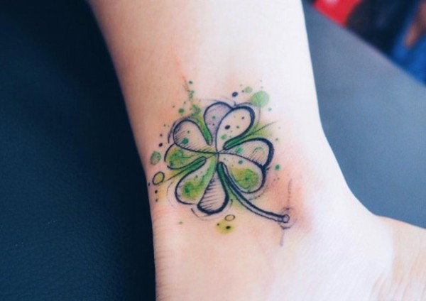年轻男女性应该都会喜欢这样清新的四叶草纹身图案
