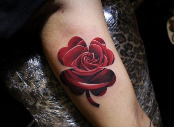 年轻男女性应该都会喜欢这样清新的四叶草纹身图案
