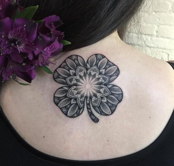 年轻男女性应该都会喜欢这样清新的四叶草纹身图案