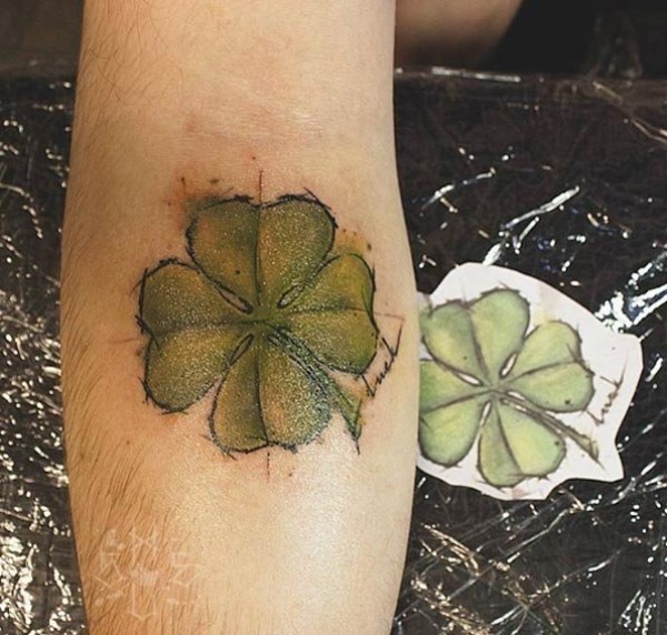 年轻男女性应该都会喜欢这样清新的四叶草纹身图案