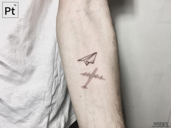 小臂小清新纸飞机点刺纹身图案