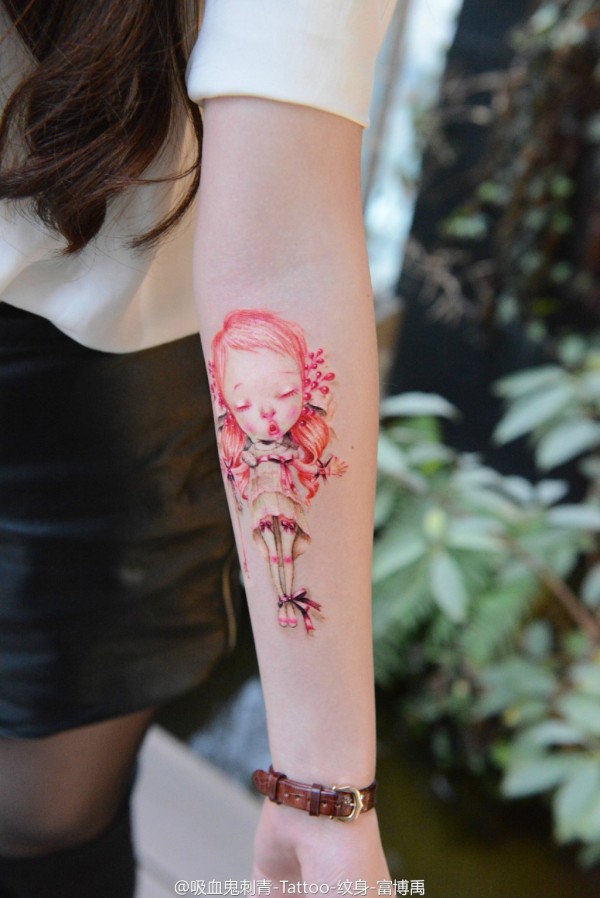 复古卡通红唇美女手臂纹身_卡通纹身图案大全_纹身图吧