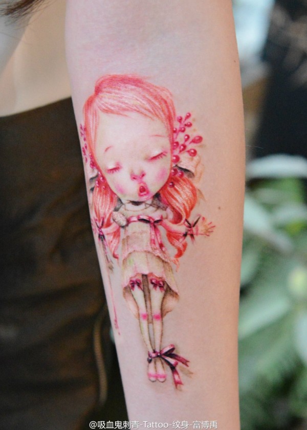 复古卡通红唇美女手臂纹身_卡通纹身图案大全_纹身图吧