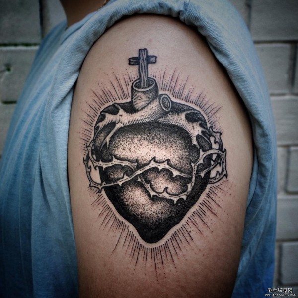大臂欧美school心脏十字架纹身图案