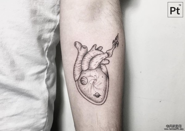 小臂小清新心脏太空点刺纹身图案
