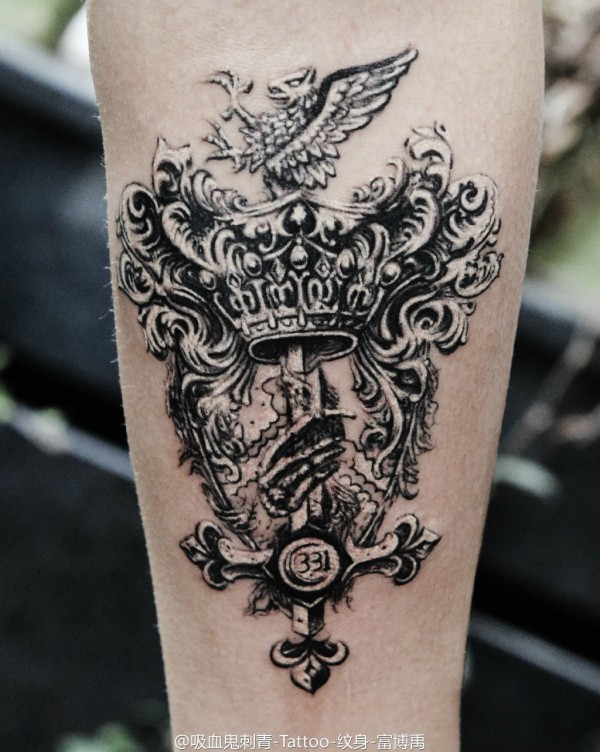 由剑.盾.皇冠.飞鸟.331.组成.代表客人用剑盾来保护家人