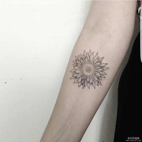 小臂花卉点刺线条小清新纹身图案