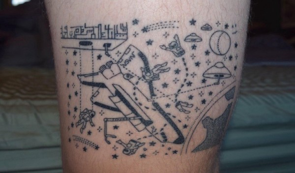 小腿上黑色简单个性线条纹身小宇宙纹身图片