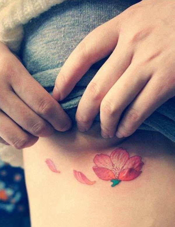 美女胸部小樱花时尚纹身图片