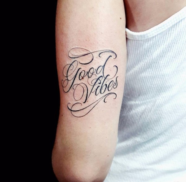 中国有嘻哈TT手臂上花体英文纹身图片