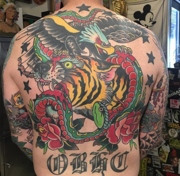 彩色的中国传统纹身动物和鬼怪纹身图案