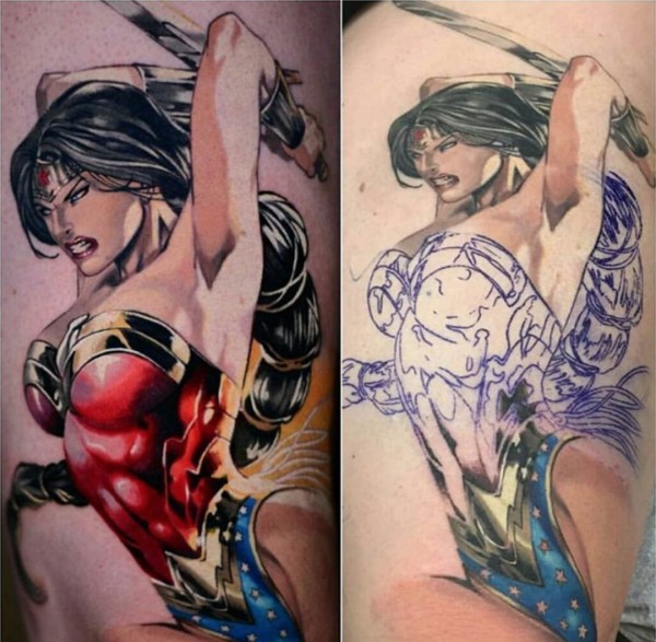 卡通彩色纹身动漫人物神奇女侠漫画纹身图案