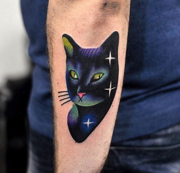 可爱的小黑猫纹身水彩猫脸纹身动物图案纹身