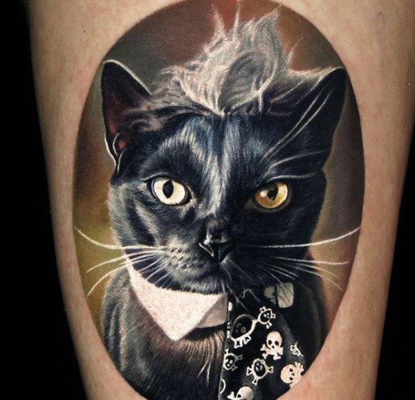 可爱的小黑猫纹身水彩猫脸纹身动物图案纹身
