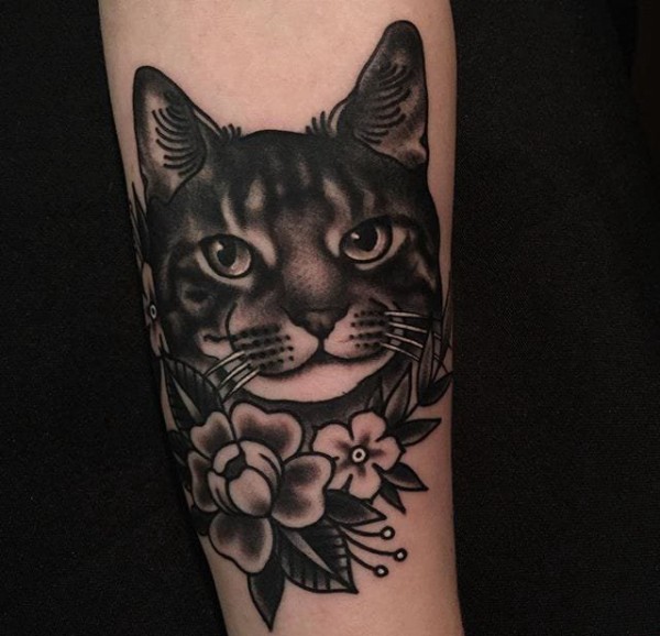 可爱的小黑猫纹身水彩猫脸纹身动物图案纹身