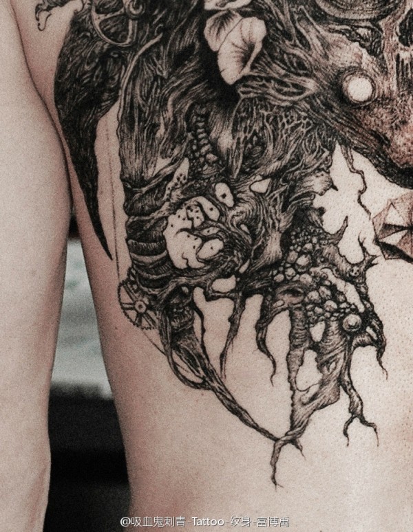 侧腰女骷髅刺青图案图片_骷髅纹身图案大全_纹身图吧