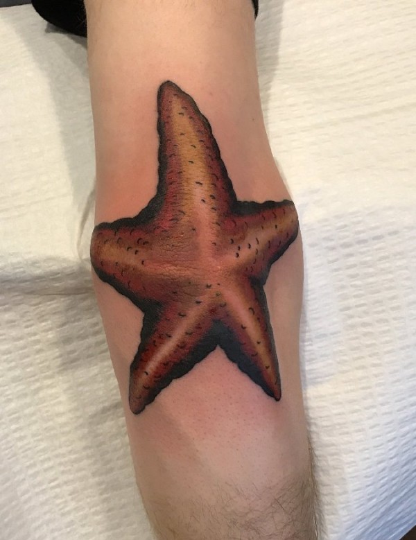 手臂肘部上的大海星纹身