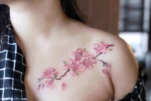 后肩唯美花藤英文图案图片_植物纹身图案大全_纹身图吧