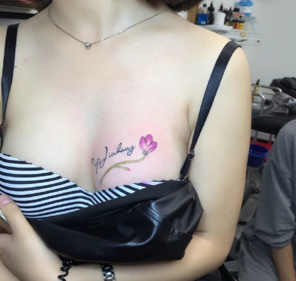美乳边上的小情感英文纹身刺青