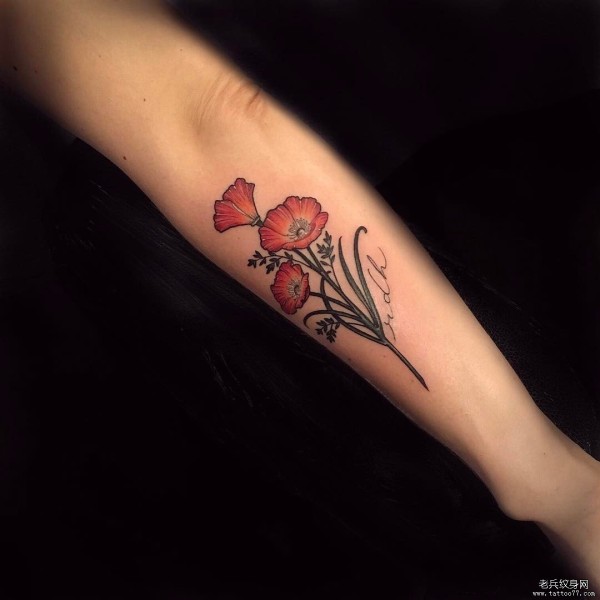 小臂小清新欧美花卉纹身图案