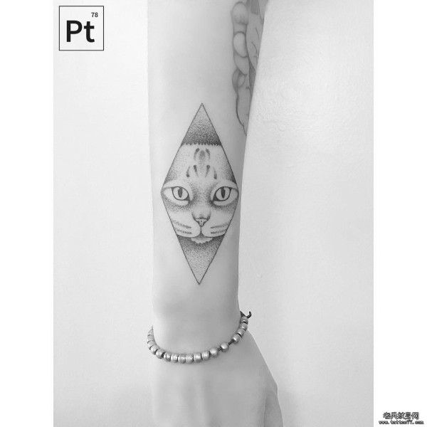 小臂点刺几何猫小清新纹身图案