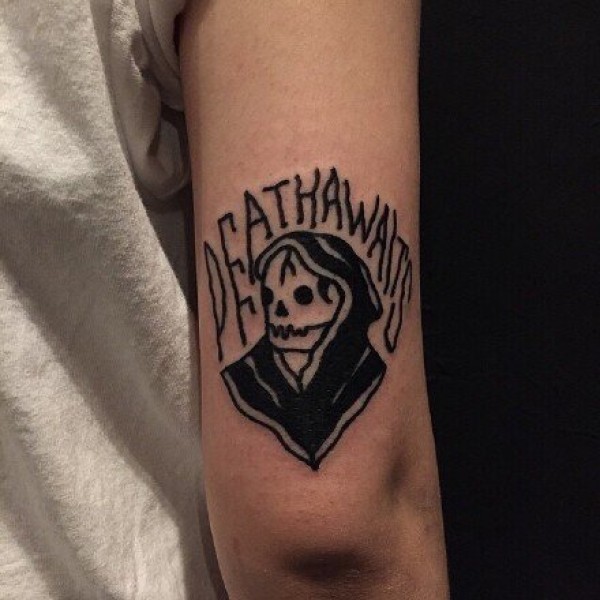 手臂个性另类的骷髅字母纹身图片