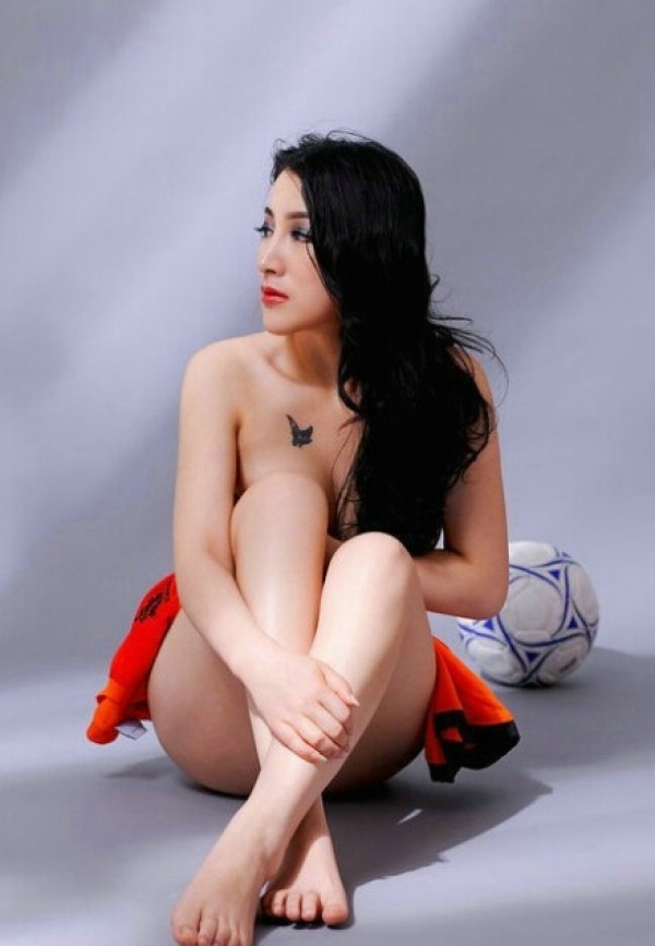 足球宝贝嫩模沈璐胸部蝴蝶纹身图片