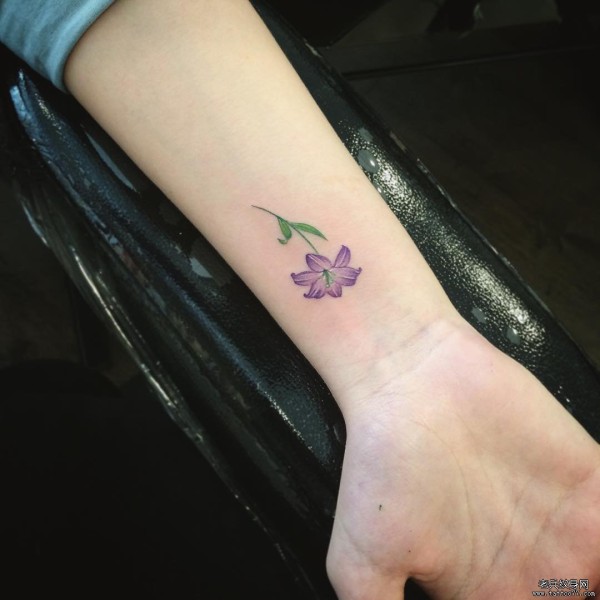 手腕小清新紫色百合花纹身图案